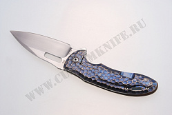 Бразильские мастера-кузнецы из Korth Cutlery славятся качеством и оригинальностью своих изделий. Как и у всех кастомных клинков, вышедших из мастерской семьи Лала, у этого особенный, уникальный дизайн. Рукоять этого экземпляра изготавливал Руди Лала — обратите внимание на финишное покрытие рукояти, которое сделано по технологии «апельсиновая корка». И фрейм, и клипса обработаны точильным аппаратом, чтобы придать рукояти ножа соответствующий вид, смахивающий на кожу какого-то экзотического животного. Механизм открывания ножа - шарикоподшипниковая система IKBS, одна из разработок мастерской Korth Cutlery и Флавио Икомы. Нож открывается и закрывается легко, прекрасно сбалансирован.