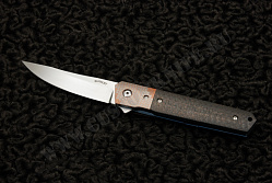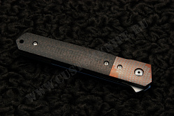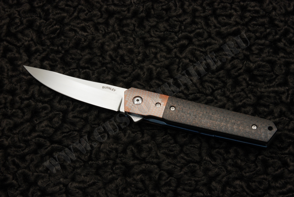 Нож Kwaiken Copper Niobium представляет собой оригинальный складной нож выполненный Лукасом Бёрнли. В качестве материала для изготовления лезвия мастер выбрал сталь CPM S110V , которая является одной из самых износостойких.