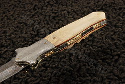 - материал рукояти: больстеры выполнены из дамасской стали, накладки изготовлены из слоновой кости.