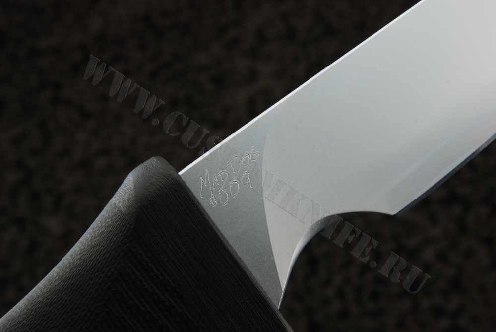 Редчайший нож от знаменитого мастера Кевина МакКланга (Kevin McClung), основателя компании Mad Dog Knives, изготовленный и заточенный вручную. Клинок выполнен из высокоуглеродистой инструментальной стали Starrett 496-01, подвергнутой уникальной термообработке, которая позволила достичь феноменальной стойкости режущей кромки. Клинок покрыт слоем твердого хрома, который обеспечивает превосходную устойчивость ножа к коррозии. Рукоять изготовлена из уникального композитного материала, отличающегося устойчивостью к высокой температуре, давлению и электрическому току. Нож поставляется в фирменном чехле из кайдекса, оборудованном поясной петлей.