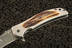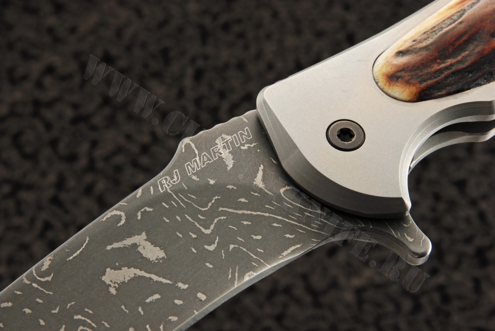 Чрезвычайно твердая титановая рукоять обладает высокой функциональностью. В этой модели используются вставки из оленьего рога. Титановая часть рукояти защищает ее всю от коррозий. Следовательно, спустя даже длительный период времени, этот нож останется в идеальном состоянии.