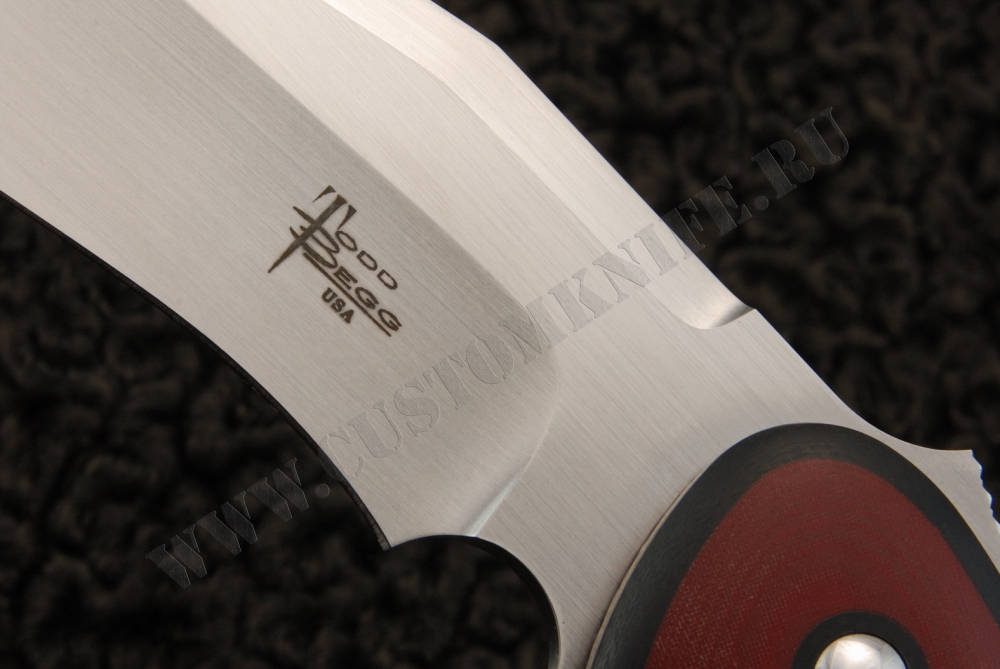 Нож Todd Begg Frontline обладает следующими характеристиками. Лезвие прошло сатиновую обработку. Предусмотрено фальшлезвие. Стопорный штифт скрыт. Имеется рифленый уступ для большого пальца, а также флиппер, на который были добавлены насечки.