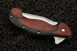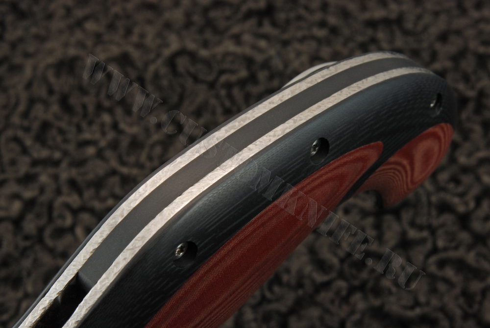 Рукоятка изделия собрана из накладок красного и черного цвета. Нож раскладывается с помощью подшипниковой системы IKBS. Процесс извлечения лезвия протекает легко и плавно, без необходимости двигать запястьем руки. Имеется титановая клипса. Изготовитель проделал поистине значительную работу.